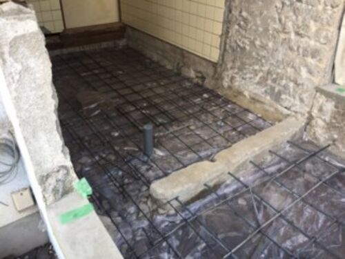O様邸基礎コンクリート養生中なので、今日から隣の耐震リフォーム工事ほぼ完了のM様邸外構工事(コンクリート下地)入りました。ozako